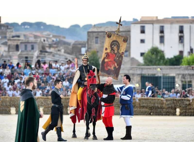 Partecipa al tradizionale Palio dei Normanni, un'emozionante competizione che si svolge nelle antiche strade di Piazza Armerina. Ammira i cavalieri in armatura gareggiare per la vittoria, immergendoti nella storia e nelle tradizioni della Sicilia.
